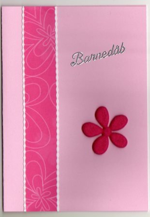 Lyserød indbydelse med pink blomst.