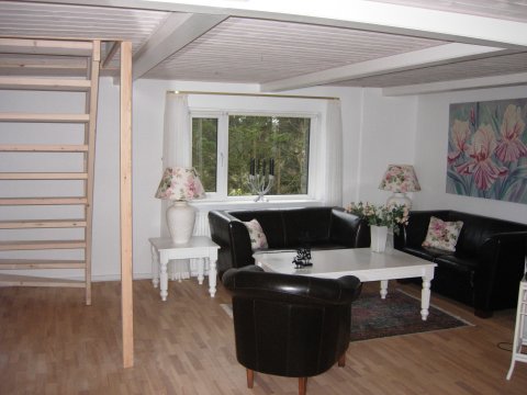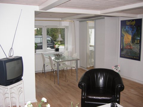 Lejligheden består af en stor stue med spiseplads ,tv, parabol, minianlæg og sofaarrangement som på billedet.