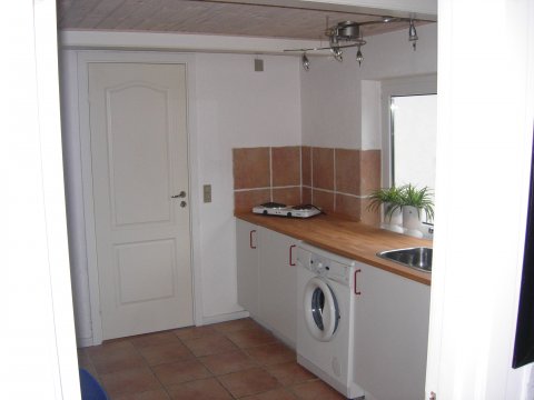 Stort køkken med køleskab, 2 kogeplader , kaffemaskine, microovn, el-keddel Der er endvidere mulighed for at vaske og tørretumble - dog mod betaling.