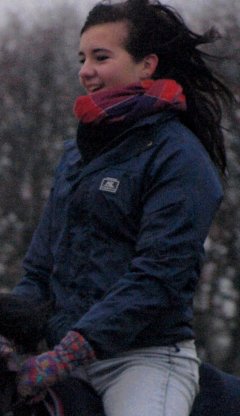 Jeg er en 14 årig pige som rider på mit 9. år som rytter. Lige siden jeg var helt lille har jeg altid gerne vil arbejde med dyr, ved mig var det så bare hesten der trak igennem. Jeg plagede og plagede om at få lov til at starte til ridning og det fik jeg jo så lov til. Jeg er stævne startende dog kun på klubplan lige pt. men meningen er at jeg i 2010 skal ud og starte distriks stævner. Jeg rider ikke for at vinde, men for at sammen spillet med hesten man har derhjemme også skal fungere på udebane, selvom det ikke går lige godt hver gang man er afsted til et stævne. Er min træner og jeg tilfreds har det jo bare været et godt stævne, med en dejlig pony. Man behøves ikke vinde for at være tilfreds.