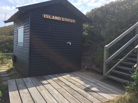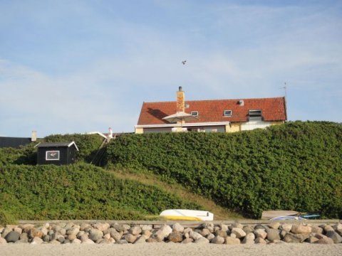 Stranden neden for huset er ekstra fin. Godt beskyttet mellem to stenmoler er der sandbund et pænt stykke ud og der er samtidig lavt, som gør det meget børnevenligt.