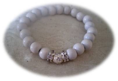 Yndig armbånd med hvide perler med forsølvede mellemled.