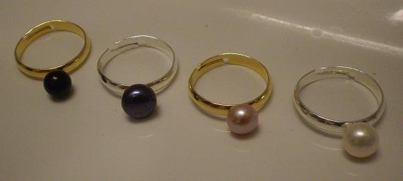 EKS. Sort anboret ferskvandsperle på guld ring eller lilla anboret ferskvandsperle på sølv ring. Ringen er justerbar bagpå.