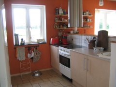 Huset er udstyret med bord-plads til ca 40 kuverter; porcelæn, glas og service. Alle kuverter vil ikke være helt ens, dog ens creme-farvede tallerkener. Der er store vandglas, hvid-og rødvins-glas, ens. Duge medbringes selv, bordenes størrelse kigger vi på, når du kommer på første besøg. Køkkenet har ovn med fire kogeplader, kaffemaskine, vandkoger og, hvad der normalt findes i et køkken(/ dog ej microbølgeovn)