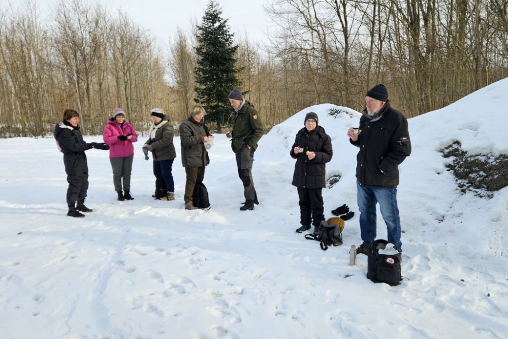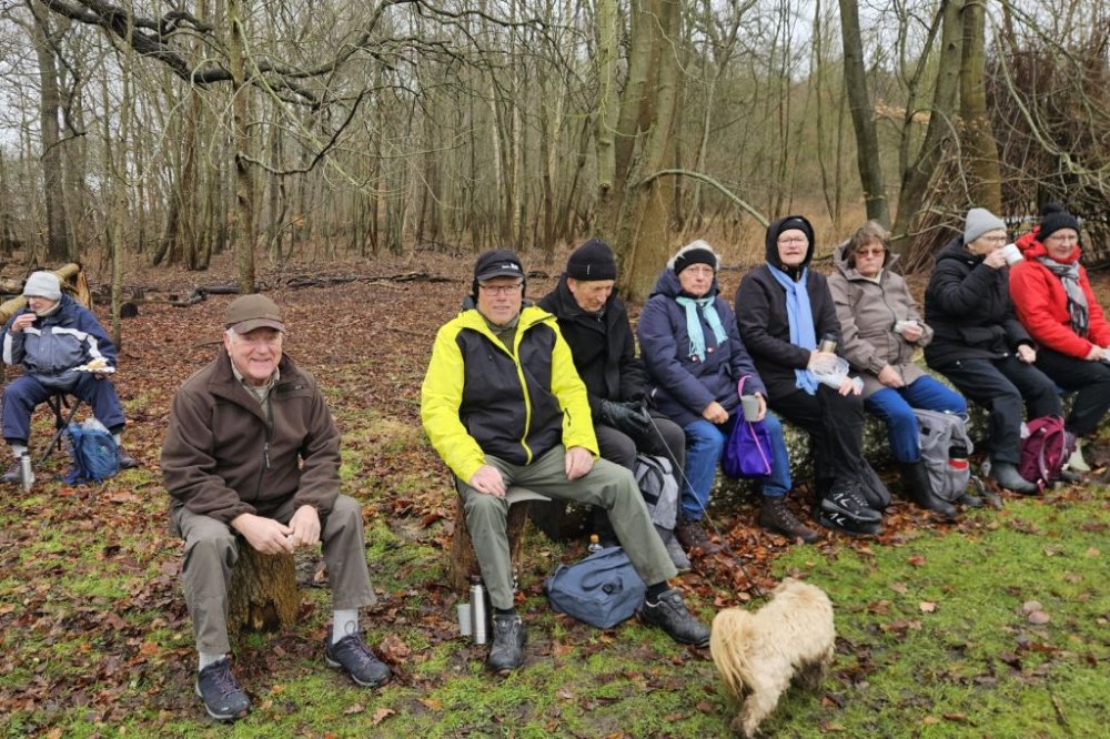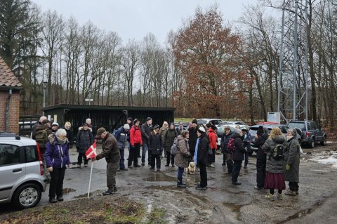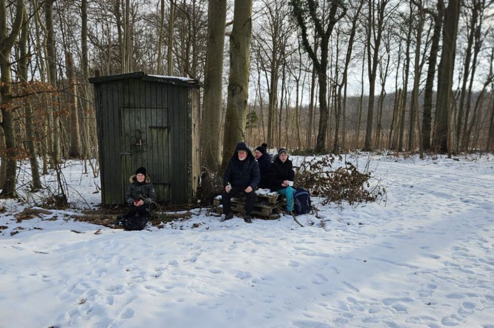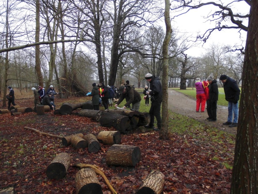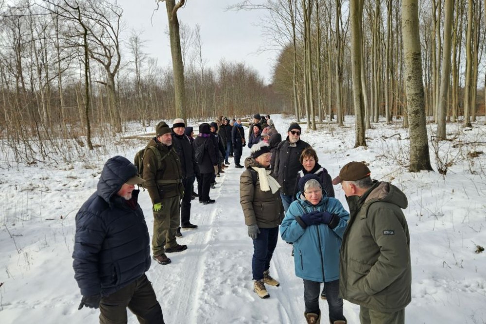 I går var Lise og mig her oppe og tjekke turen til i dag. Selv om det var det fineste vejr man kunne tænke sig, så viste det sig, at det var ekstremt glat mange steder. Vi gik her i skovene omkring Guldborg. Vores programlagte tur: Nord og Sydskoven kan ikke lade sig gøre, det kunne vi se med det samme.