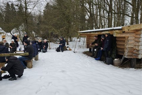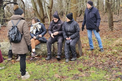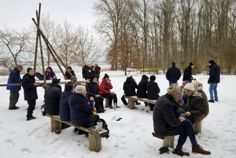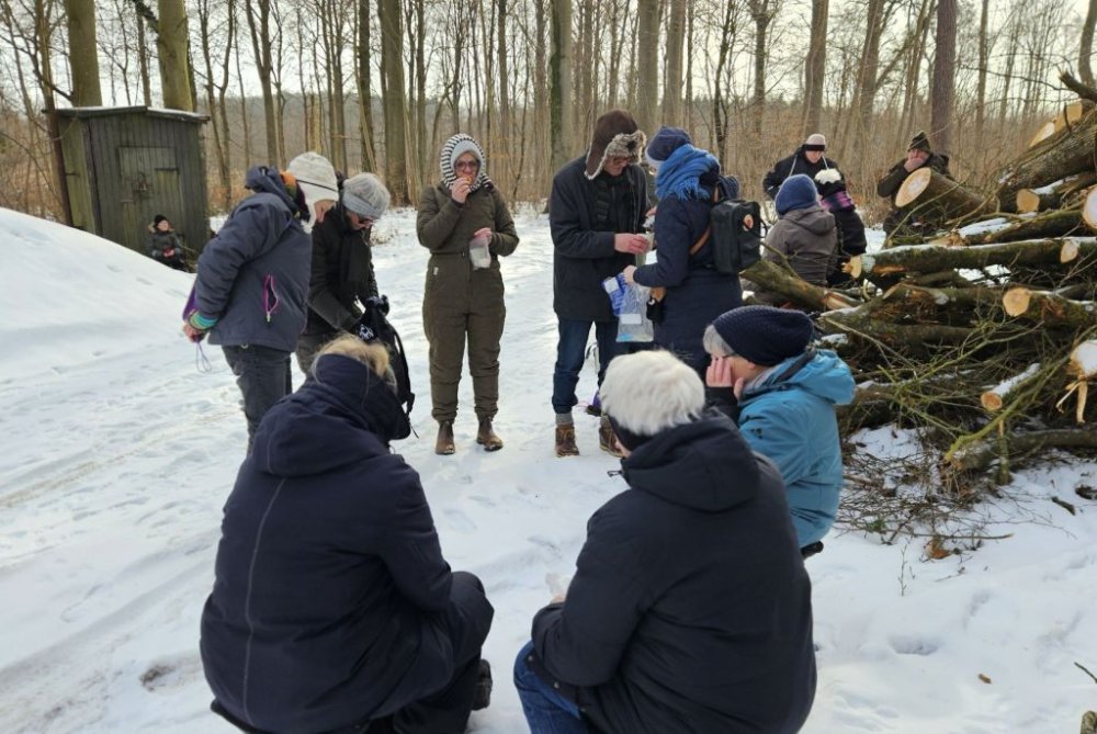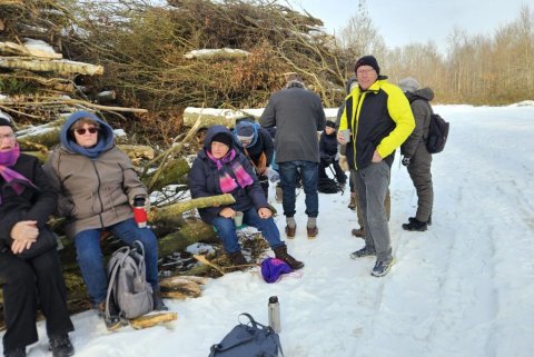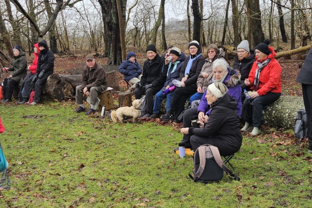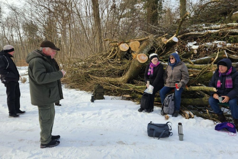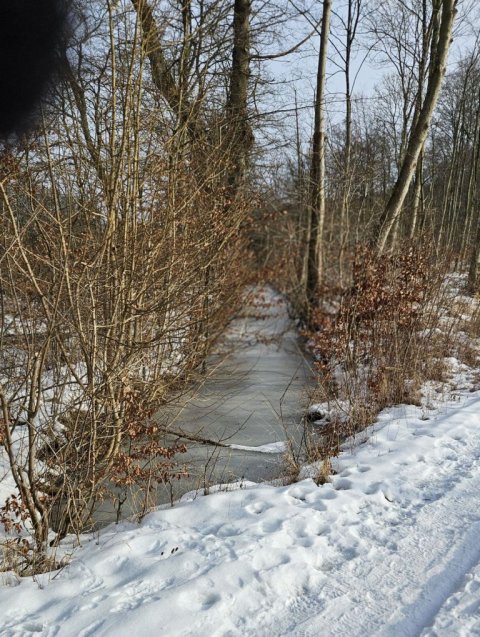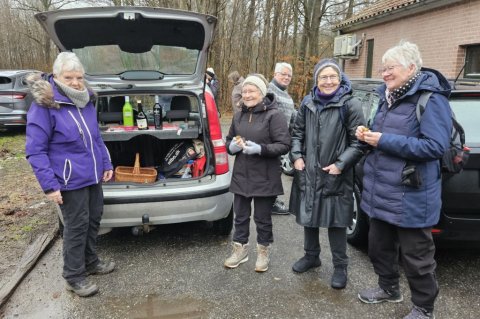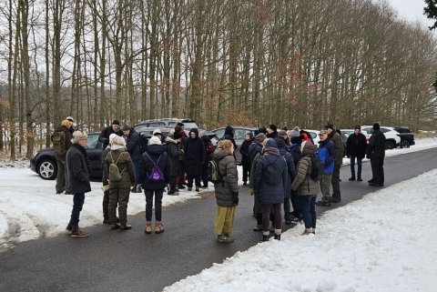 I går var Lise og mig her oppe og tjekke turen til i dag. Selv om det var det fineste vejr man kunne tænke sig, så viste det sig, at det var ekstremt glat mange steder. Vi gik her i skovene omkring Guldborg. Vores programlagte tur: Nord og Sydskoven kan ikke lade sig gøre, det kunne vi se med det samme.