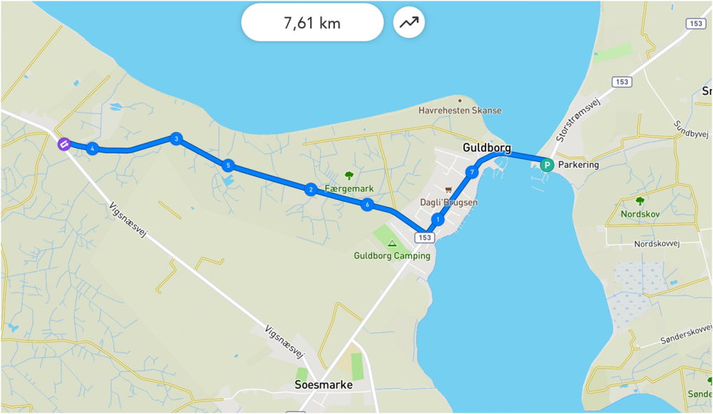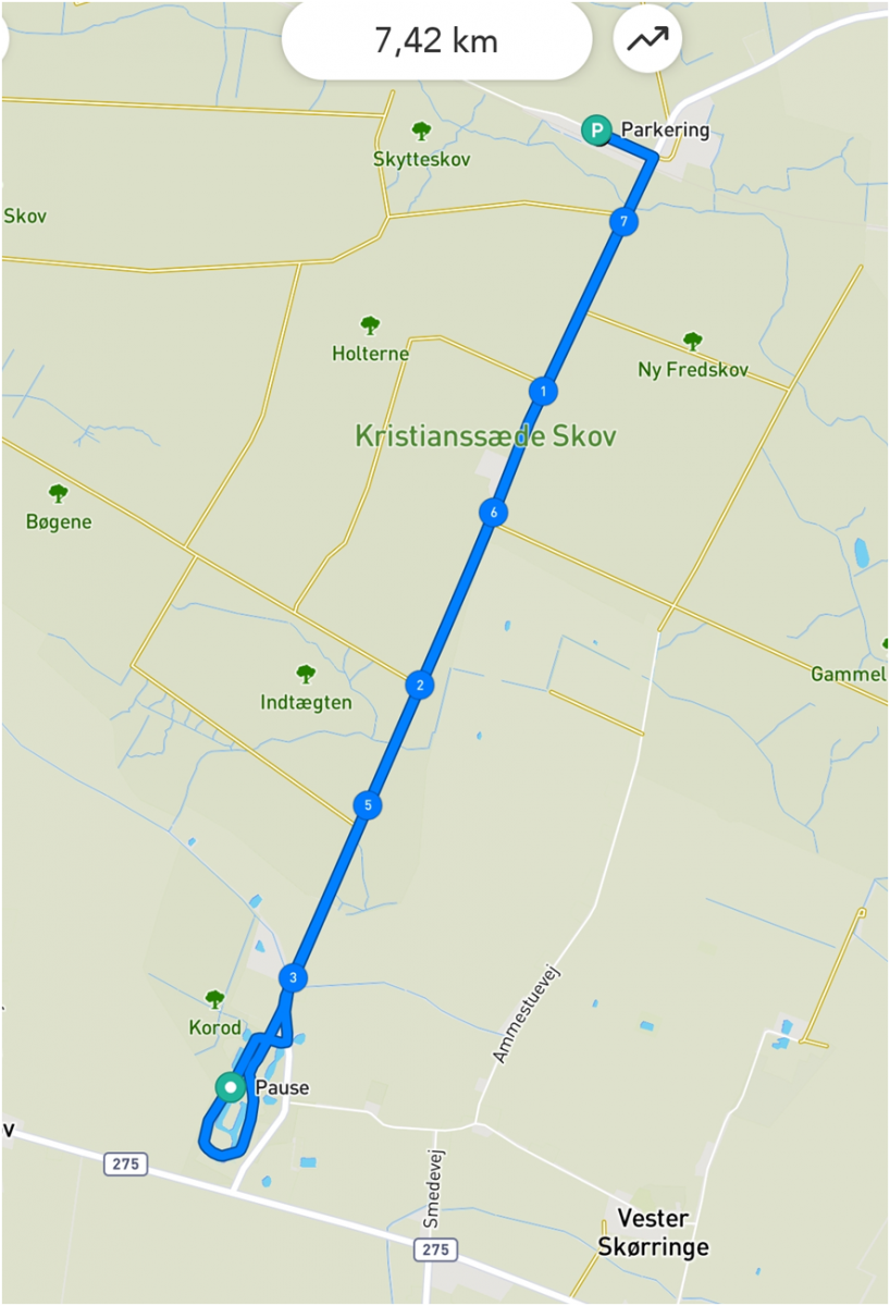 Turen er på 7,6 km. Pause forventes at være på halvvejen.