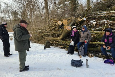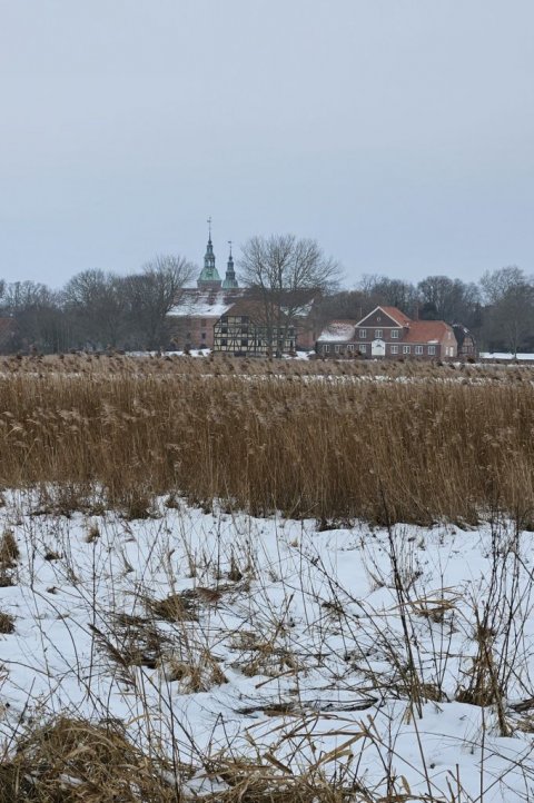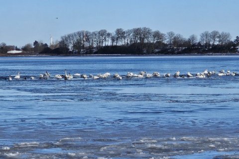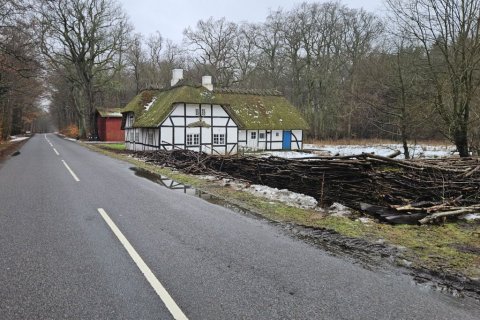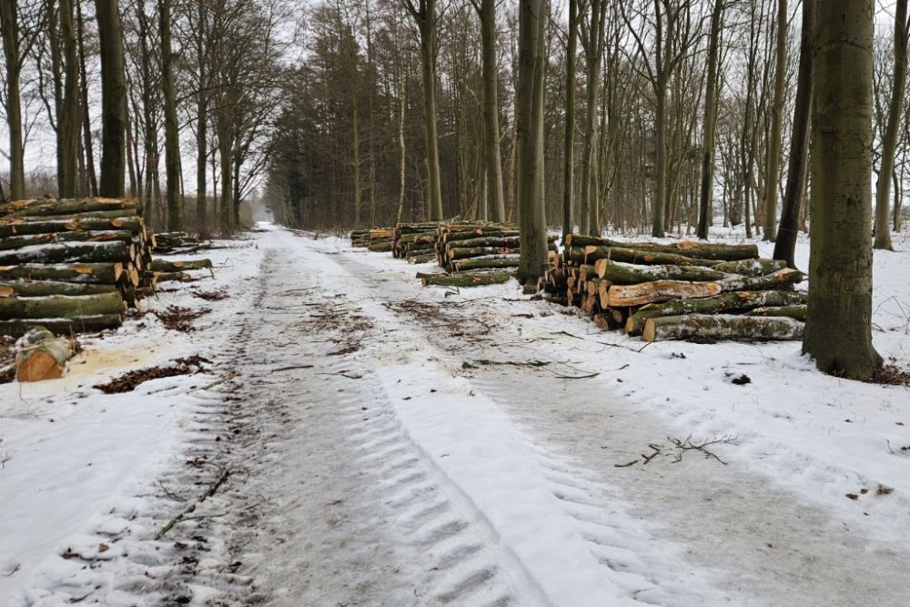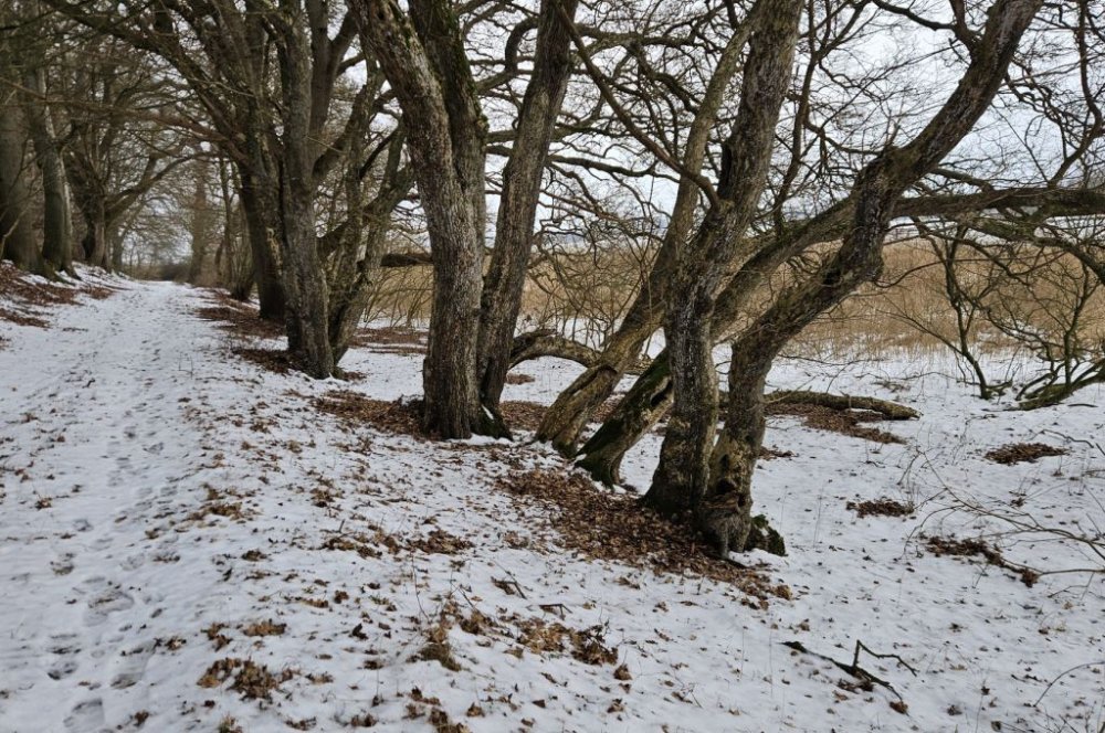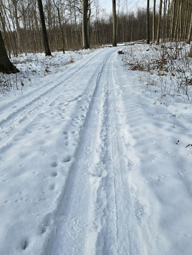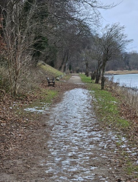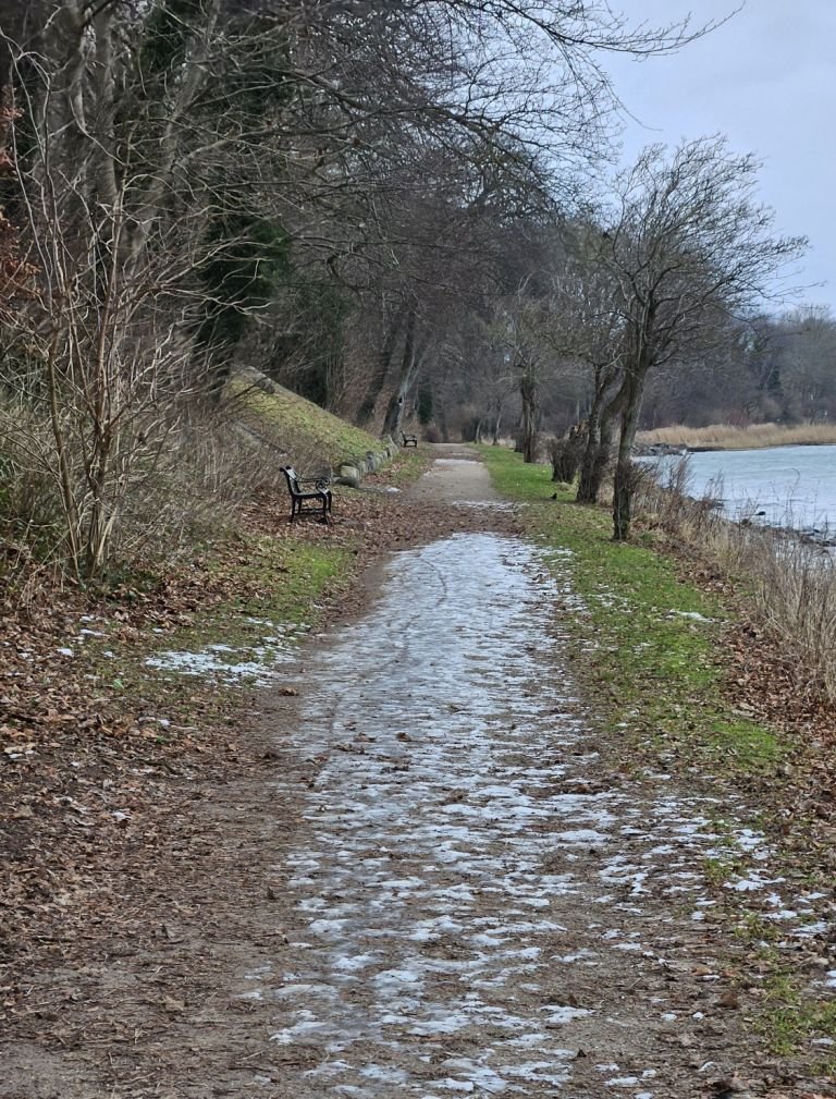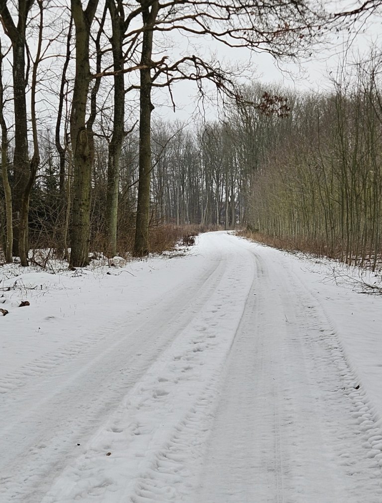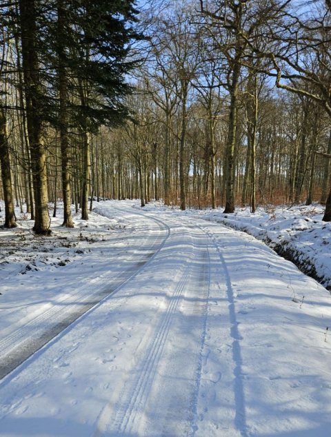 Så den eneste mulighed er at gå over i Storskoven på den anden side af sundet. Så kommer jeg godt nok ind på Jørgen område. Men mon ikke det går. De fleste stier og veje var for risikable at gå på. Dog var der én vej som der ikke havde været kørt på, den så meget tilforladelig ud. Men det bliver så også den samme vej tilbage igen. Jeg kørte en tur frem og tilbage på skovvejen så sneen blev trykket sammen. Så er sneen ikke er så tungt at gå i. Vi går først gennem byen og så igennem Færgemark og Hildesvig Skovene. De hører under Ålholm og sammen med Storskoven er de på 914 ha. Vær forsigtig når vi går på fortovet det er ikke alt der er ryddet. Vi holder flere pauser undervejs, så i også kan nå at se lidt af skoven. Nogle af billederne der kommer med på hjemmesiden, er fra turen i går, hvor jeg havde håbet at vi kunne gå, men den gik ikke.
