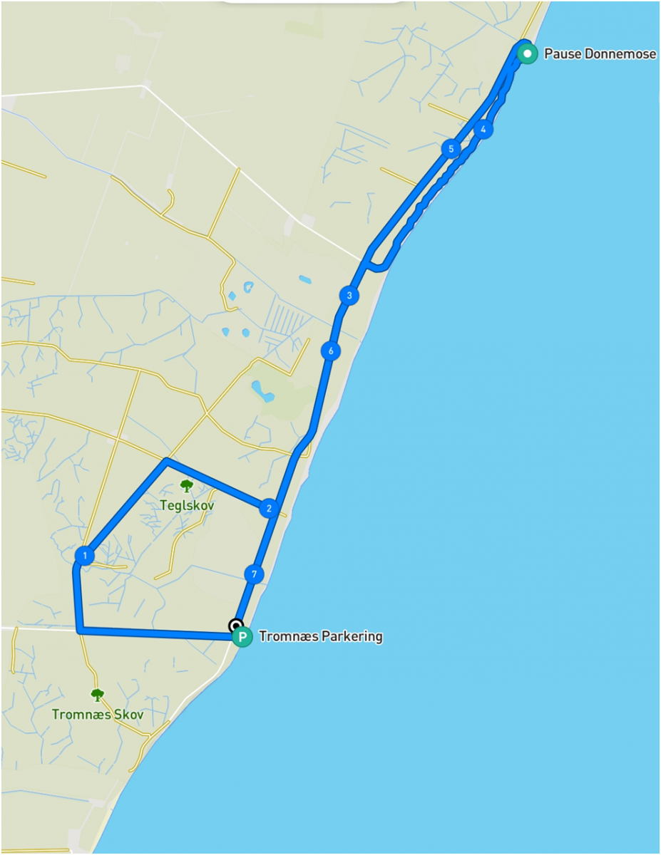 Vi holder pause ved 4,5 km ved Donnemose kolonien.