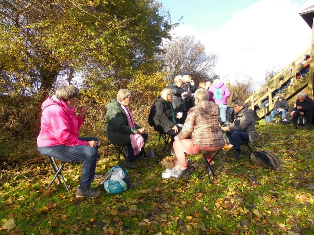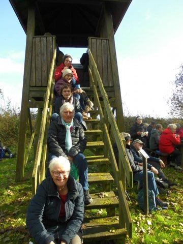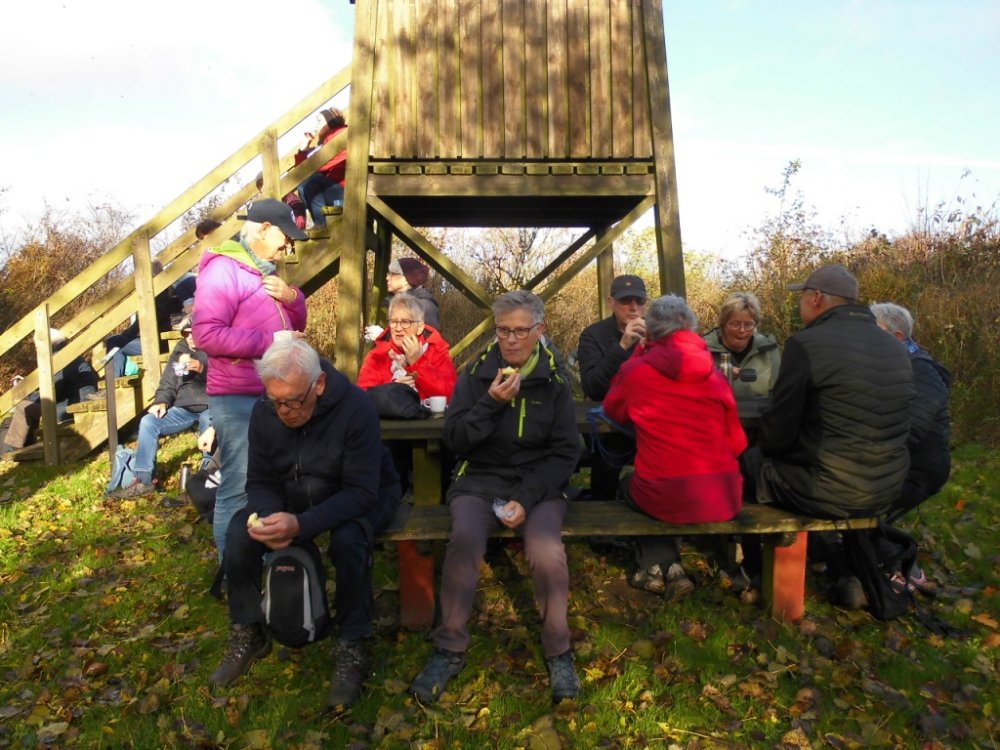 Vi holder pause ved fugletårnet. Hvor der er lidt at sidde på. God tur.