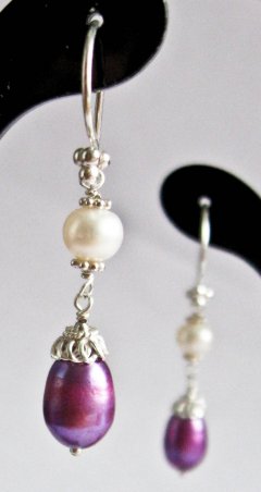 Sølv øreringe med støvet lavendelfarvet swarovski-perle og lille ferskvandsperle.