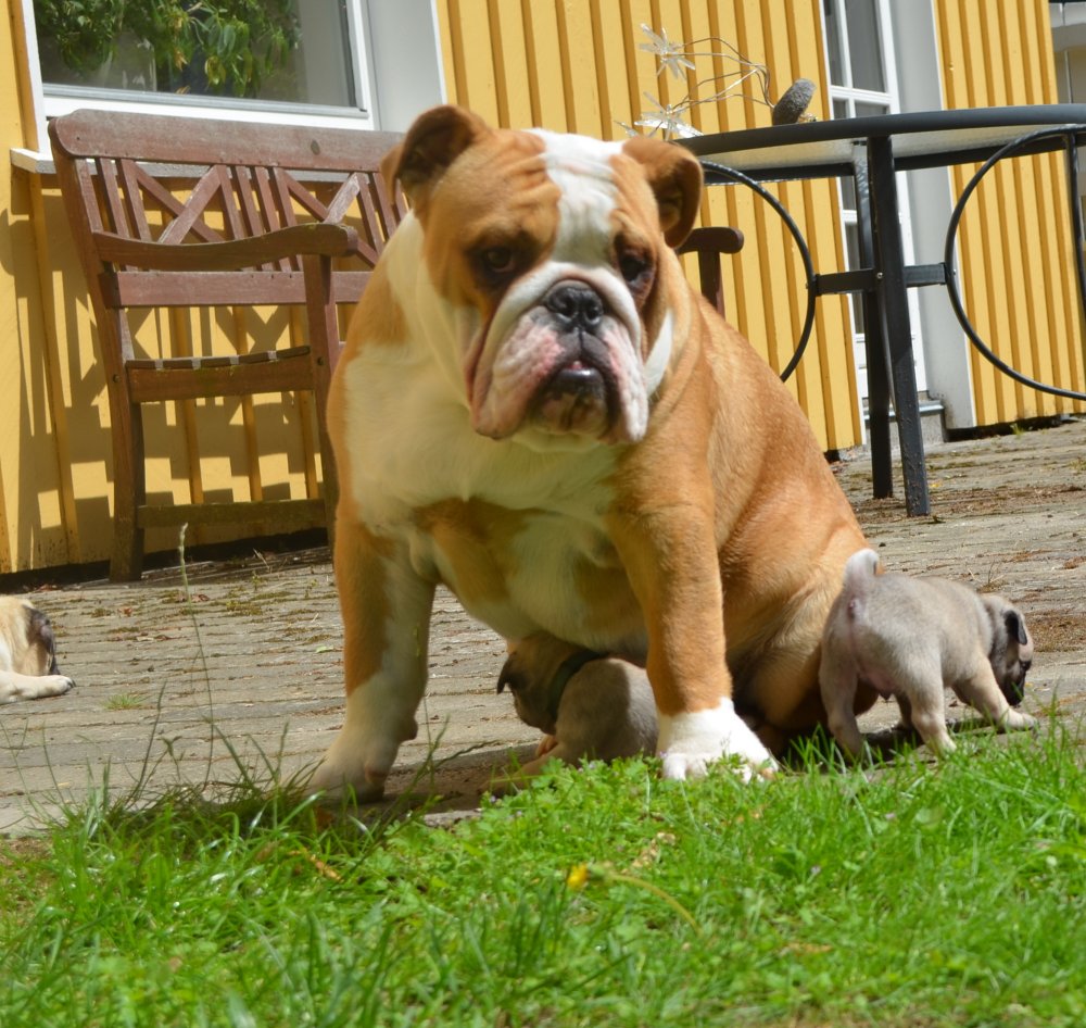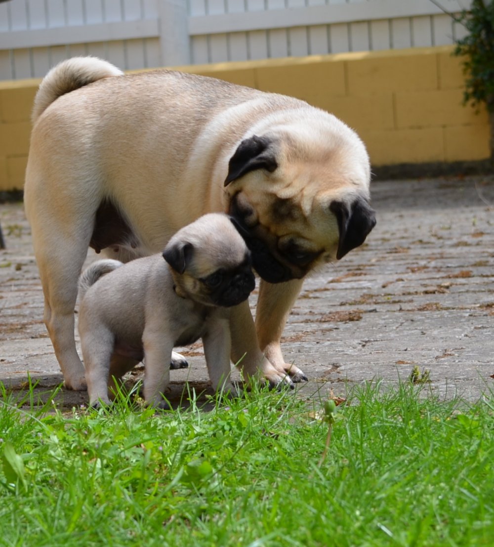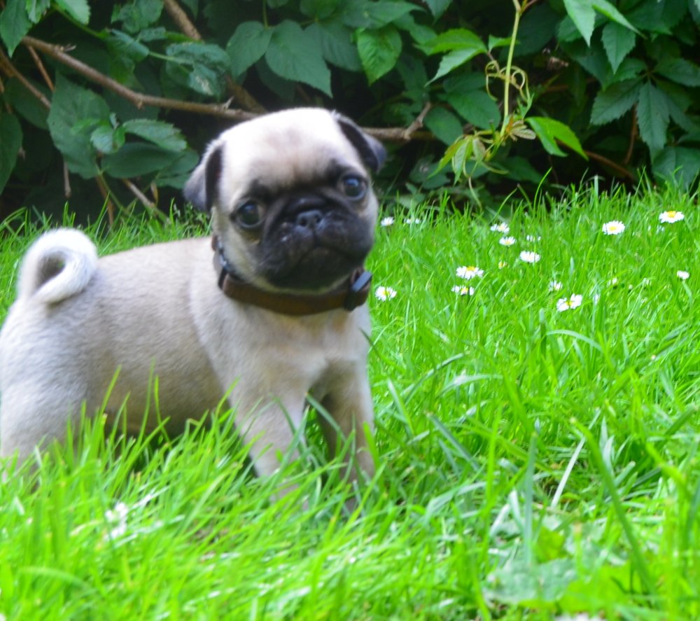 De har alle fået lov at løbe rundt som de ville i stuen. Det var de vilde med. De voksne hunde leger rundt med dem, og især Pedro er rigtig sød ved dem