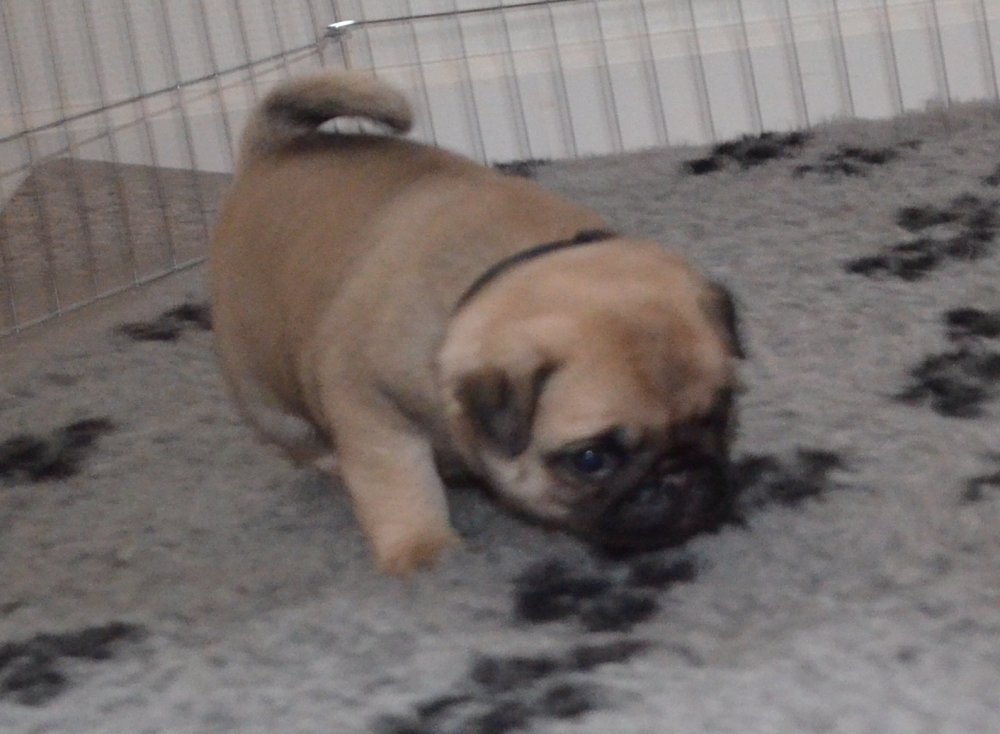Det er meget svært at fange et godt billede af hvalpene nu. De har så meget fart over feltet, at når vi lige har trykket på kameraet, så er det kun et halvt ben, en bagdel osv der er på billedet