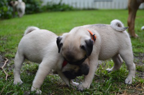 Der er fuld fart på hvalpene nu. Intet foregår i alm gang. Det er løb.