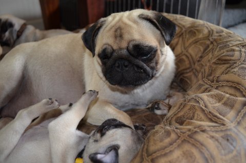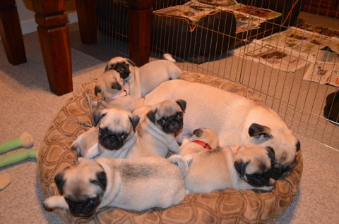 De bruger deres kroppe meget og udfordrer hinanden hele tiden. Pludselig hørerman et skrig og så er det en hvalp der trækker en anden hvalp hen over gulvet i halen. De udforsker større og større områder, så vi kan godt mærke de er ved at være klar til deres nye familier om en god uge