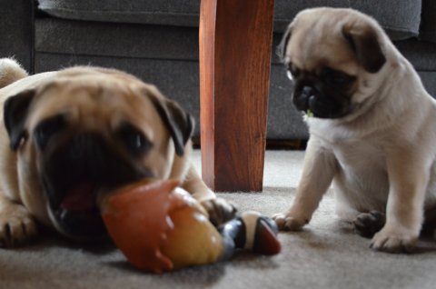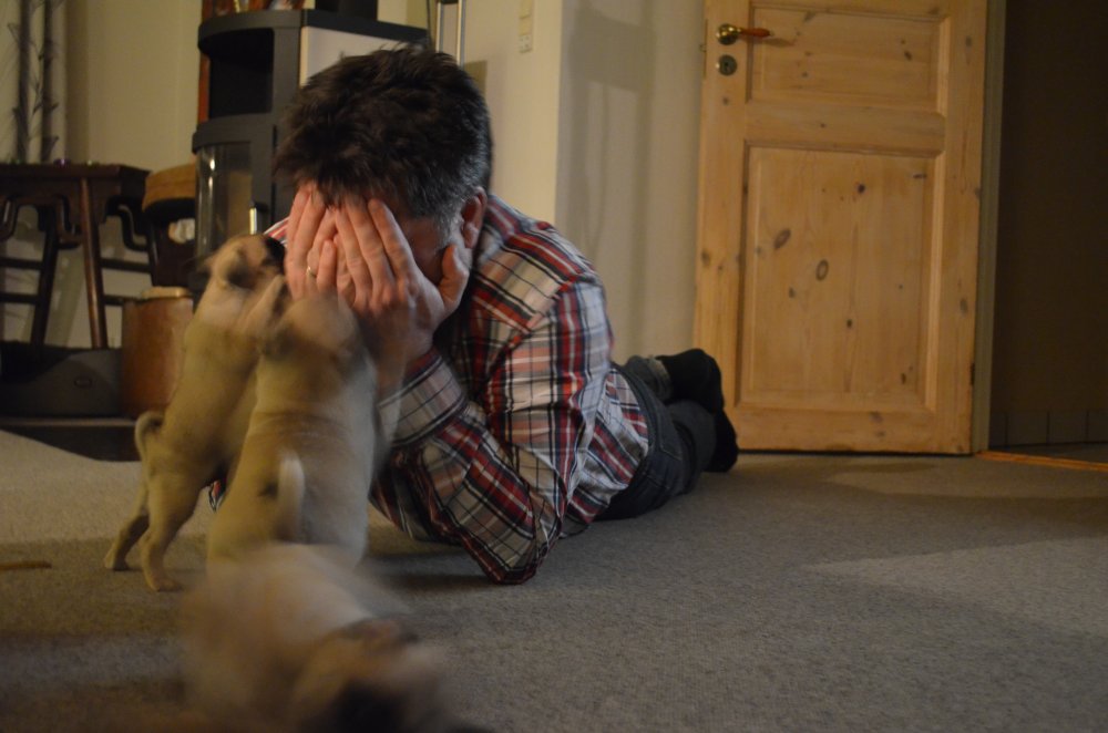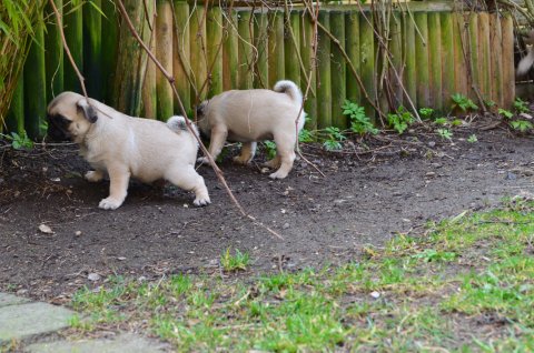 Renligheds træningen går rigtig godt. De små elsker bare udelivet. At bide og ruske i grene og grankogler er bare noget af det bedste!