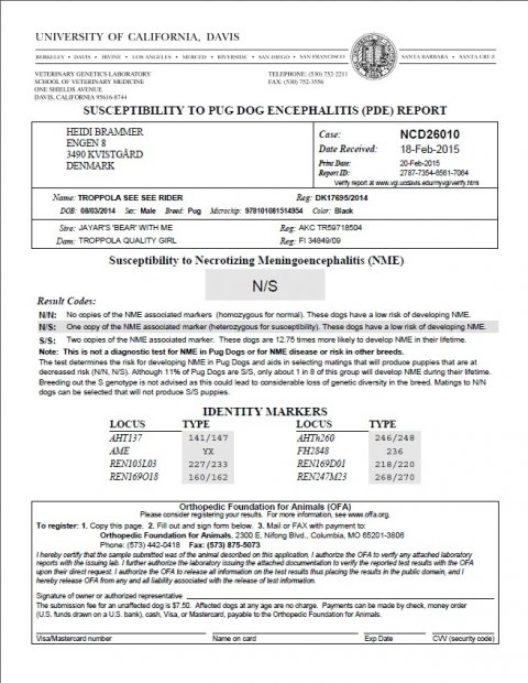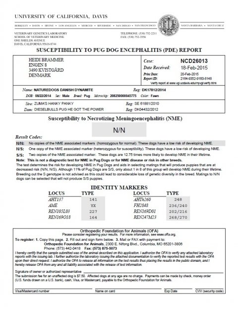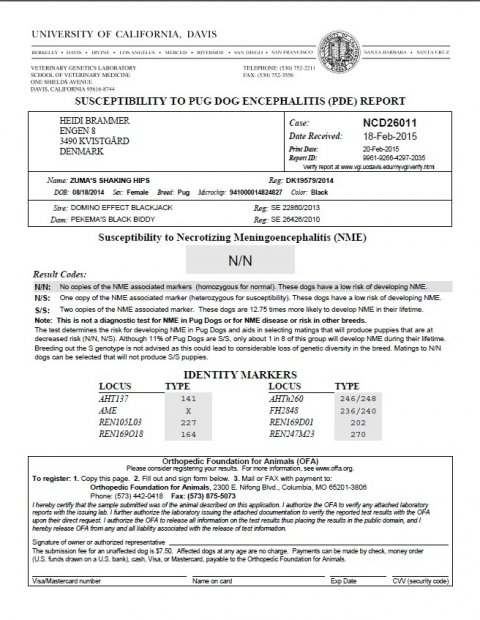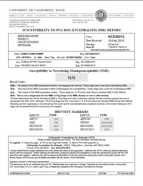 D. 29 januar 2012 Alle vores mops DNA er blevet testet FRI for PDE. Så vi er jubel glade