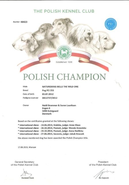 Vores eget opdræt Naturedogs Bells The Wild One "Aston" vandt sin klasse med cert og blev til POLSK CHAMPION. Ingen ord kan beskrive den stolthed vi har