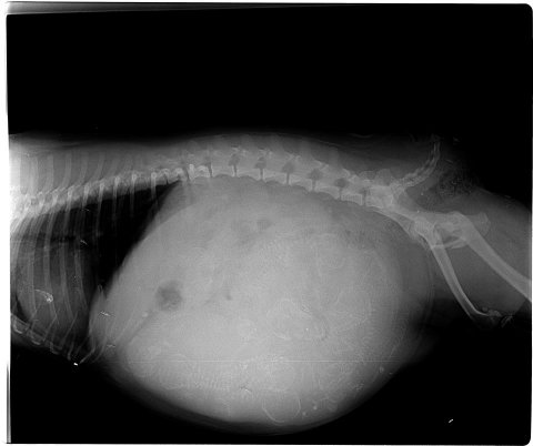 Hun er i dag blevet røntgenfotograferet og der ligger 8 måske 9 små hvalpe i hende.