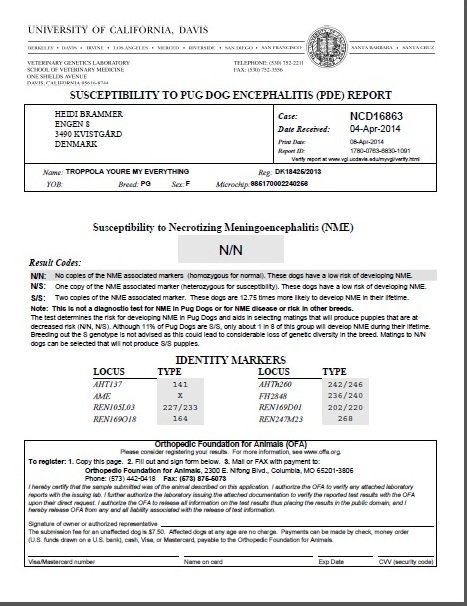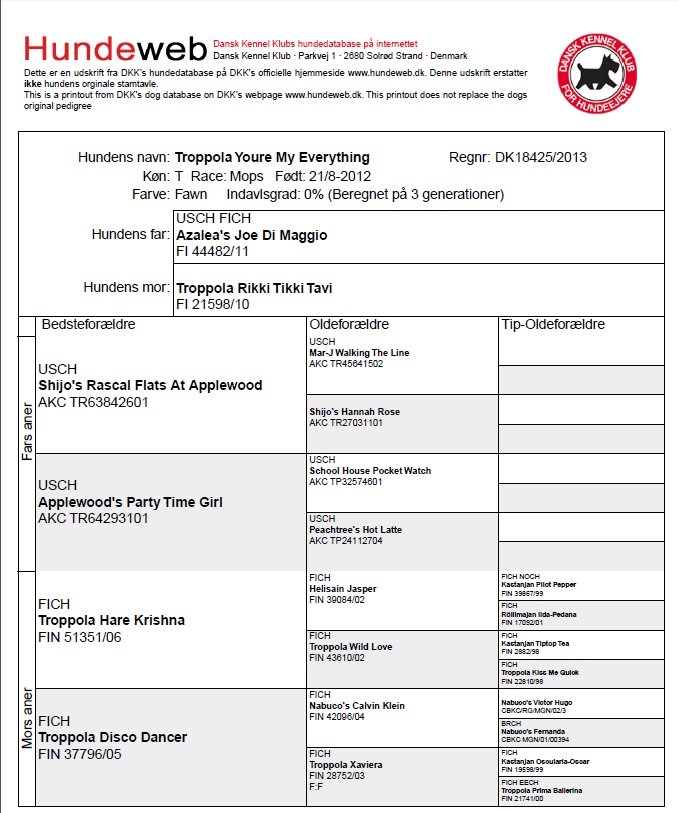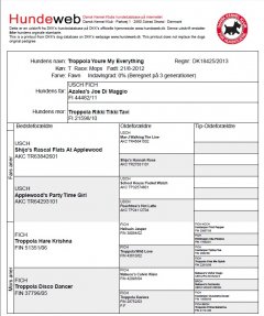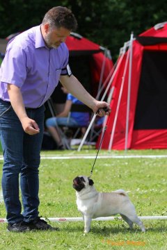 Let bygget tæve med et godt hoved, gode ører, godt bid, god hals, ryg, god ansat hale, muskuløs bagpart med gode benstammer, bevæger sig godt, god pels farve og godt temperament