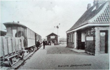 Ryomgård-Gjerrild privatbane (Gjerrild-Grisen) blev etableret i 1911 og i 1917 blev den videreført til Grenå. Stationsbygningen i Nimtofte kom til at ligge uden for byen, og det var en skuffelse for byen. Man forsøgte at få den lagt nærmere centrum, men det skulle byen selv betale, og det kunne man ikke magte. Som i andre tilfælde byggedes stationen for lille, så der måtte betydelige udvidelser til efter nogle år.