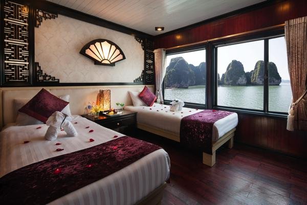 + Måltider + Entre til Grotten og Halong Bay + Leje af Kajak + Overnatning(er) (båd/hotel)
