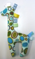 With bright colors and exciting textures, these tag giraffes are made to stimulate baby's senses of sight and touch.  The ribbon "tags" around the edges catch baby's eye and attract their attention.  A rattle inside adds to the fun!