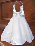 Simply beautiful and elegant, your doll will be the world's prettiest bride in this satin and chiffon gown with ribbon rose details on the bodice and full skirt. Dress can be made in other colors than white!