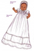 What could be more special for a baby's christening than an outfit hand-made with love and care?  We offer several designs to choose from, as well as accessories like bonnets and jackets to complete the look.  All pieces are available as custom-orders, so email us with your selections and design ideas.  It may take 2-3 weeks to complete an order, so please allow plenty of time for the outfit to be made and delivered.