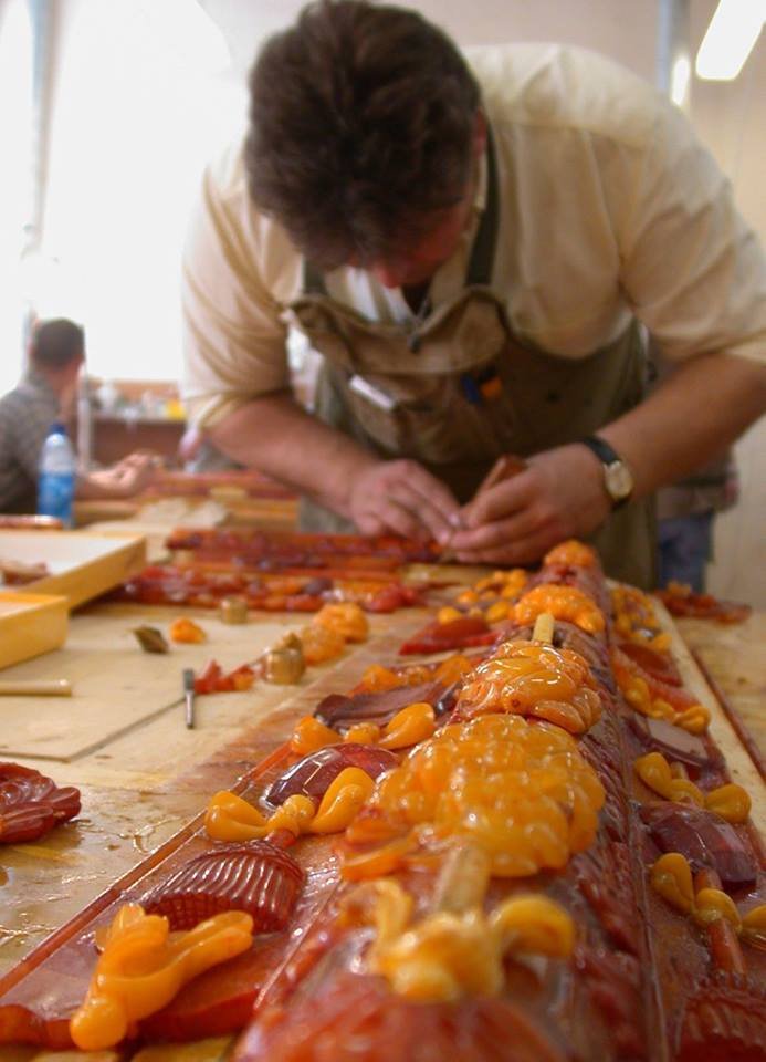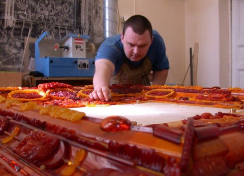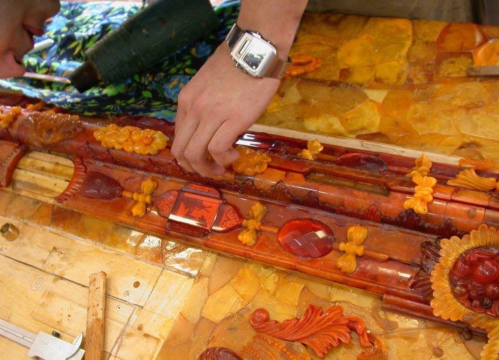 Det mest fantastiske rav-arbejde, der nogensinde er udført i hele verden, blev påbegyndt i Preussen i 1701 af Kong Friedrich Wilhelm 1. Ravværelset, et helt værelse hvor alle vægge var beklædt med rav-plader med udskåret relieffer. Alle møbler var ligeledes beklædt med rav-plader, og lysestager, vaser m.m. blev lavet helt i rav. I de første 7 år blev arbejdet især udført af en kunstner fra det danske hof, Gotfred Lacquei, men han blev uvenner med kongen og rejste hjem til København. Arbejdet blev overtaget af Thurau og Schacht fra Danzig og blev færdigt i 1711. Det var det største arbejde af sin art udført i rav, med en vægt på næsten seks tons. Ravværelset skulle være et helt fantastisk syn når sollyset kom ind i rummet. Besøgende beskrev det som at stå midt i et gyldent skattekammer, og det var uden tvivl kongens livsværk og stolthed.