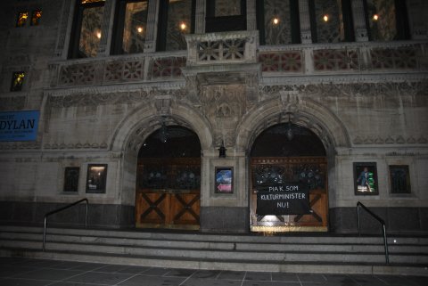 Det Rosa Forår har natten til mandag hængt et banner op på Aarhus Teater og krævet