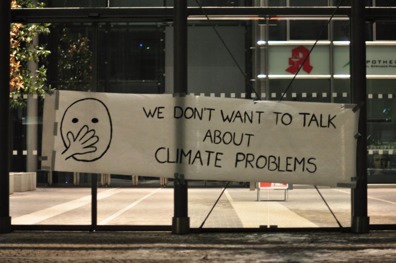 klimaforandringerne ikke eksisterer eller ikke er menneskeskabte. Dermed bliver det ikke et emne,