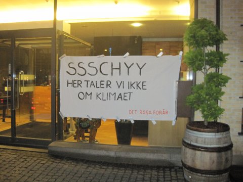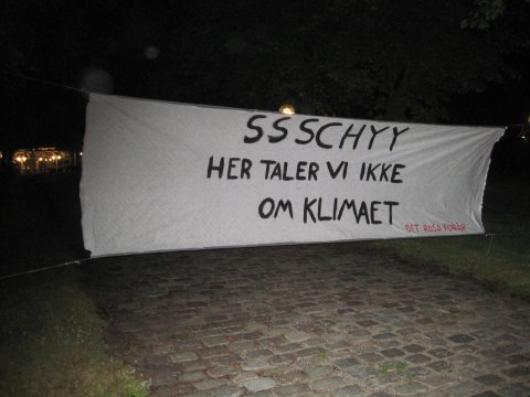 Nattens aktion skal ses i forbindelse med gruppens opsætning af 200 sedler i Århus midtby med teksterne »Ssschyy« og »(det taler vi ikke om?)«. Vi ønsker at gøre både medier og århusianere opmærksomme på den risiko, vi løber ved ikke at bevare fokus på klimaforandringerne og løsningerne på disse. Aktionen skal ikke forstås som en direkte kritik af DR, TV2 og Århus Stiftstidende, men som en samlet kritik af de danske medier.