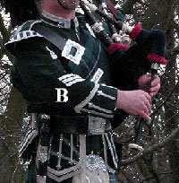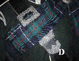 Betegner bælte og bæltepænde, der bæres om livet. Disse findes i mange forskellige udgaver. Spændet har ofte et nationalt symbol eller et keltisk mønster. Regimenterne og nogle sækkepibeorkestre har deres eget design eller logo på. På billedet ses et "Queens Own Cameron Highlanders bælte. Spænderne på både waist-bæltet og cross-bæltet er lavet af ægte sølv. | | |