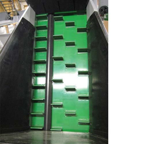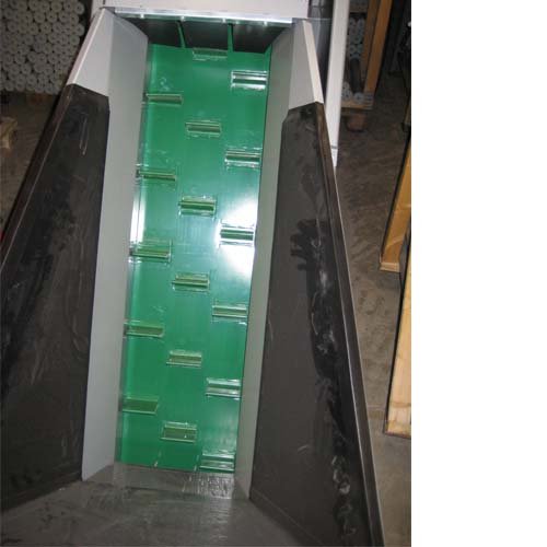 Maskinens transportør fylder vejebeholderen. Lige før den ønskede vægt er opnået reduceres båndhastigheden hvilket forøger veje nøjagtigheden.