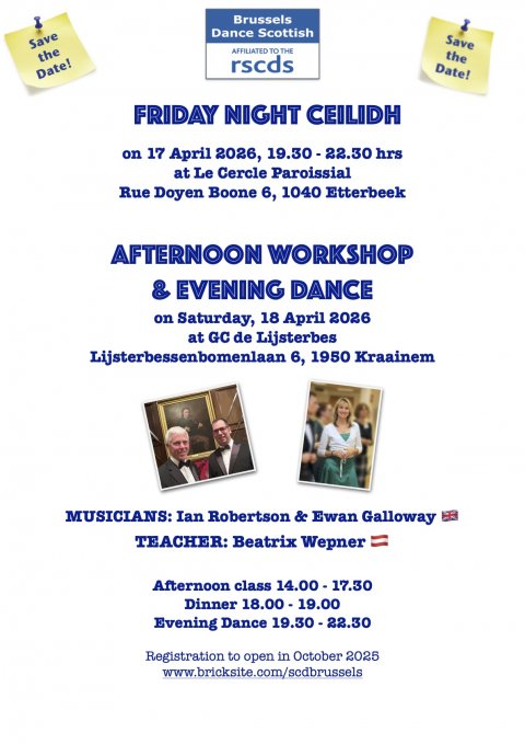 Friday 17 April 2026 - Ceilidh (19:30 - 22:30) at Le Cercle Paroissial Rue Doyen Boone 6, 1040 Etterbeek