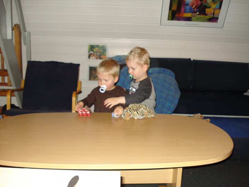Vandpytter er altid skønt!  Har det helt store vinter-dress på i dag  Har lige fundet mig en "lille" pind!  Her er nu pænt, også om efteråret!  Skal lige se om græskarmanden er slukket...  Hmm, tror mest det er mor der er vild med at kramme hele tiden!  Det er dejligt at man må hoppe i sofaen!  Jeg æææælsker de her mini-cykler!  Vi bliver godt nok trætte af at lege dagen lang  Puha, der er hårdt at lege!  Det bliver nok svært at tænde lyset...