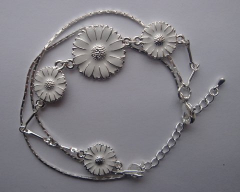 Flot Marguerit armbånd i hvid og sølv. 100 % nikkelfri.