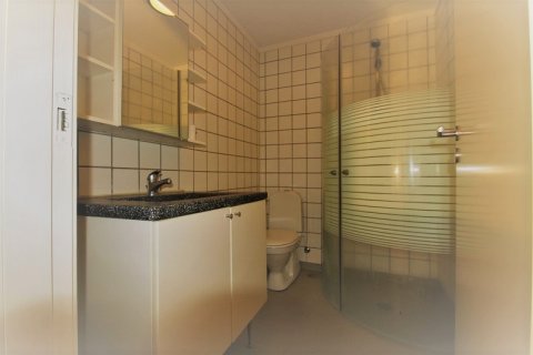 Badeværeset er med laminatgulv, hvide fliser på væggene og dejlig stor brusekabine samt vaskearrangement.