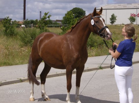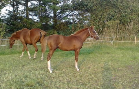 Solhøjgårde Mazay er et år og lige kastereret. Han bliver omkring 147 cm, rød med 4 sokker og blis. Far ESPH Marchi, MF er DSPH Chamberlain. Han er chippet, brændemærket, vacc 1. gang og sælges med blåt hestepas. Er ved at lære at løfte ben, blive trukket med osv. er meget lærenem og lærevillig. Pris 10.000,-