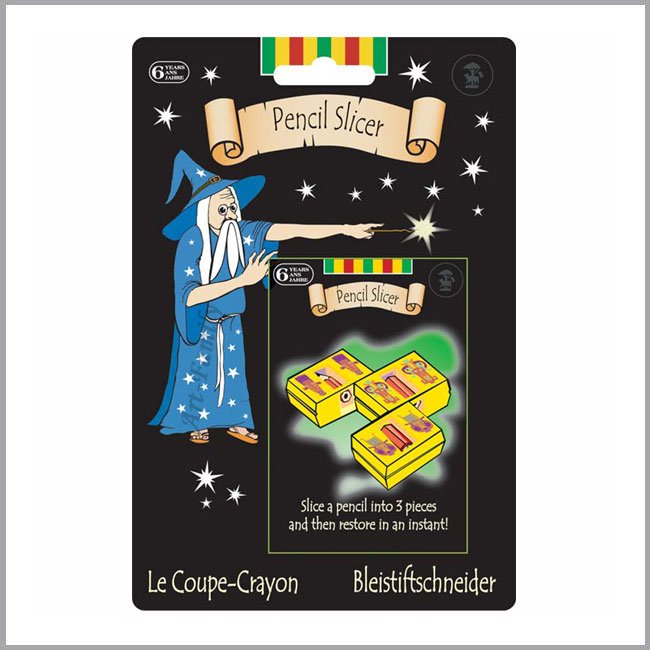 Magisk boks der skærer en tilsyneladende helt almindelig blyant i tre mindre stykker. Herefter kan du genoprette skaden ved at trylle den intakte blyant frem igen.