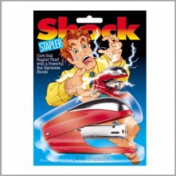 Placer denne hæftemaskine ved printeren eller kopimaskinen på jobbet. Ligner en almindelig hæftemaskine, men giver et chokerende stød, når den anvendes.