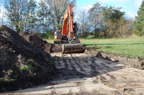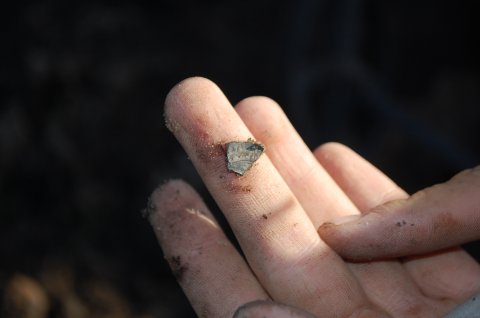 Dette bekræftede vores mistanke om, at ploven gennem tiden måske havde spredt skatten mere end først antaget, og det blev derfor i samarbejde med arkæolog Sidsel Whålin besluttet at prøvegrave lidt igen på skatten som vi lavede Mandag og Tirsdag 4-5/11-2013.