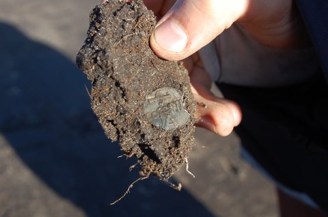 Det var egentligt meningen, at vi blot skulle lave et lille prøveskrab, men da de første mønter igen dukkede op, gav Sidsel Whålin den gas, og vi udgravede på to dage et område omkring fundstedet på ca. 100 x 100 meter.