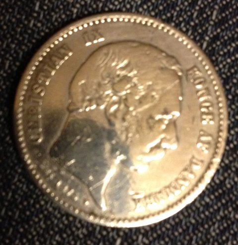 Sølvmønt fra Christian IX år 1875 fundet på mark.