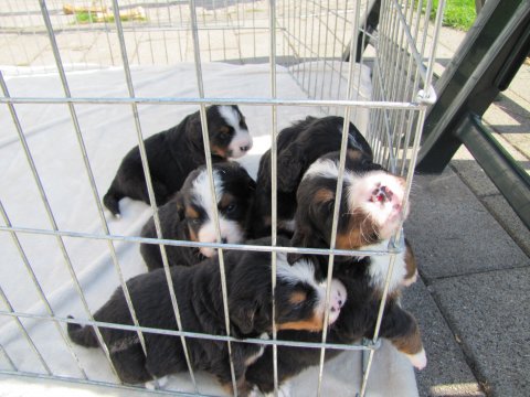 De er nu i haven det meste af eftermiddagen og i stuen om aftenen, og kun på hundeværelset om natten. Det betyder også at de får oplevet verden med alt hvad den indebærer. Xillijan der vil lege og gø, støvsugeren der larmer eller Xl der brummer når de vil til hendes patter og musik og larm fra radio og tv, jov, verden er stor.