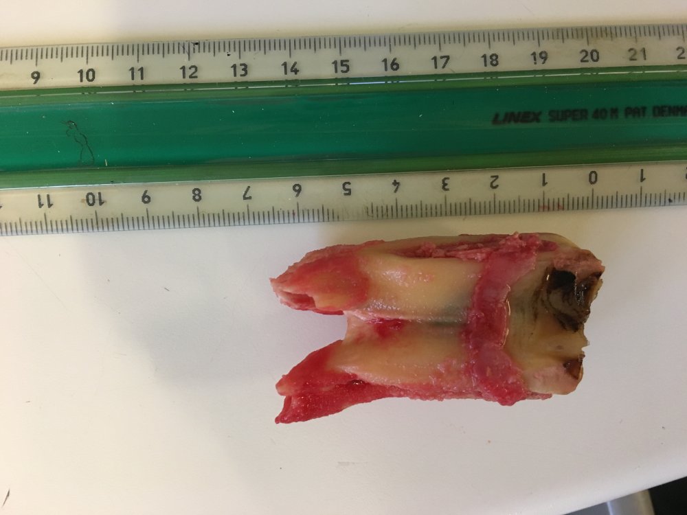 Flere ting kan komplicere en tandudtrækning. Det kan fx være, hvis kronen er knækket af i tandkødsniveau eller hvis dette sker undervejs i ektraktionen, fordi tanden er inficeret eller decideret rådden. Hvis kronen mangler eller en del af roden sidder tilbage, kan det være meget svært at komme til at få greb om tanden. Tidligere kunne dette føre til, at man var nødt til at lægge hesten i narkose og banke tanden ud gennem knoglen fra rodsiden, hvilket var en traumatisk operation med mange komplikationer og bivirkninger for hesten. I dag har har vi mulighed for i disse tilfælde at lave en såkaldt minimalinvasiv buccotomi. Det betyder, at vi kan etablere en operationsadgang gennem et lille hul i kinden. Hullet er ikke mere end ca. en cm langt og det er derfor en meget skånsom operationsmetode. Ved en buccotomi er det muligt at arbejde med forskellige specialinstrumenter igennem dette hul og på den måde få tanden ud. Dette krævede specialudstyr, kan man kun købe, hvis man har været på kursus i proceduren. Det har vi selvfølgelig hos Hestetandklinikken og vi har alle tre stor rutine i at anvende det.