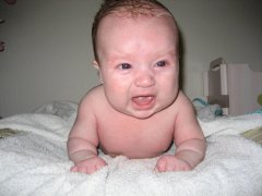 28. april 2009 Så er der atter gået en måned, og jeg er nu lidt over 7 måneder gammel. Jeg har i noget tid kunnet komme op på knæerne, hvor jeg står og rokker lidt. Jeg kan også skubbe mig selv bagud og rundt omkring, selv over dørtrin kan jeg komme, så min mor og far skal holde godt øje med mig nu. Jeg tager fat i vores lave sofabordskant og løfter mig selv op, og jeg er også begyndt at hæve mig selv op i tremmesengen ved hjælp af tremmerne, så min mor og far har sænket sengen for en sikkerheds skyld. Jeg sover stadig 1½ time om formiddagen og 1½ time om eftermiddagen, og kommer i seng ved 19 tiden om aftenen. Jeg er falder som regel i søvn, når jeg ligger på ryggen, men jeg er også begyndt at vende mig i sengen, og falder ind imellem i søvn på maven. Jeg har fået min 3. tand i overmunden (sidetand), og tandfrembrudet har irriteret mig lidt. Jeg har ikke haft lyst til at spise så meget, og har også bidt en del i sutten på sutteflasken. Om morgenen får jeg havregrød med frugtmos, og inden jeg skal sove middagslur, får jeg en lille flaske med modermælkserstating. Til frokost er jeg lige startet med små rugbrødsbidder med leverpostej, og det er jeg helt vild med. Ved siden af får jeg stadig lidt grød med frugt, og til eftermiddag, inden jeg skal ud at sove, får jeg igen lidt modermælkserstatning. Aftensmaden består af kartoffelmos med gulerødder, blomkål, broccoli eller andet grønt med kødboller. Jeg har også prøvet at smage lasagne og er i det hele taget vild efter at smage meget af min families mad. Jeg er også glad for at gumle i gulerødder, knækbrød eller skorper. Og når jeg spiser siger jeg glad mam mam imellem biderne :-). Ved 19 tiden får jeg min godnatflaske, men er som regel sulten efter sutteflaske både ved 23-tiden og 4-tiden om natten. Mor og jeg nyder stadig at være sammen på barsel og hygger os rigtig meget sammen med mødregruppen hver uge med babyerne Ida, Marie, Alexander og Isabella. Vi er også en del sammen med Annie og hendes baby-pige Nanna, så vi keder os bestemt ikke!