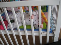 30. maj 2009 Nu har jeg efterhånden kunnet kravle i et godt stykke tid, og jeg er ved at blive rigtig god til det. Jeg kommer godt omkring og kommer også op at stå ved sofabordet og ved højstolen. Men ind imellem får jeg nogle knubs, når jeg mister balancen, men det er vist ikke nemt at undgå. Jeg har også lært at sidde, så jeg nyder også at kunne sidde på gulvet og hygge med noget legetøj. Tand nr. 4 og 5 er brudt igennem. Den ene fortand kom for halvanden uge siden, og den anden fortand er lige brudt igennem. Det er gået næsten smertefrit, dog har jeg ikke været så vild med at spise i et par dage. Jeg har længe fået både en flaske, når jeg kom i seng kl. 19, og derudover også to flasker om natten. Min mor ville meget gerne have mig afvænnet for at få sin nattesøvn igen, og da hun lige havde snakket med sundhedsplejersken om det, vågnede jeg kun en gang den efterfølgende nat. Så nu får jeg kun en halv flaske en gang om natten, og snart regner min mor med kun at tilbyde mig vand, hvis jeg vågner. Ellers er jeg stadig en glad og stor pige, der stadig er meget mor-glad. Jeg har så småt prøvet at blive passet, og det er gået rigtig fint, men jeg har endnu ikke overnattet ude.