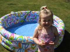 30. juni 2008 Det går rigtig godt med mig i vuggestuen for tiden. Jeg leger godt med de andre børn og hygger mig specielt meget, når vi er på legepladsen. Der leger jeg ofte med de store drenge og piger fra børnehaven, som min vuggestue deler legeplads sammen med. Jeg er vild med at cykle og er rigtig god til både trehjulede, løbehjul og almindelige cykler med støttehjul. Jeg er også vild med at samle og spise bær på legepladsens buskeområde, hvor der både er ribs og hindbær - mums! Ellers er vi så småt begyndt at nyde sommeren. Jeg har igen i år fået et badebassin, men da vi ikke selv har have, står det i farmors og bedstefars have. Derudover har jeg bl.a. været på besøg i mormors og morfars båd i Juelsminde, kigget på cirkusdyr med mormor og morfar, været i Aqua med Anders, Louise og Morten, fejret fars fødselsdag og været til Jazz Festival. Nu glæder vi os til sommerferien. Mor og jeg har ferie sammen alene i uge 29, og far holder ferie med os i uge 30. Mor har kun 14 dage tilbage på arbejdet, inden hun holder ferie i uge 29 og derefter har hun barsel. Så mon ikke vi får tid til at hygge os lidt ekstra sammen os to, inden lillesøster eller lillebror kommer til september...